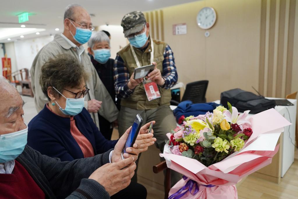 2021年3月26日,在北京首厚大家朝阳养老社区,老人们参加手机摄影课。新华社发