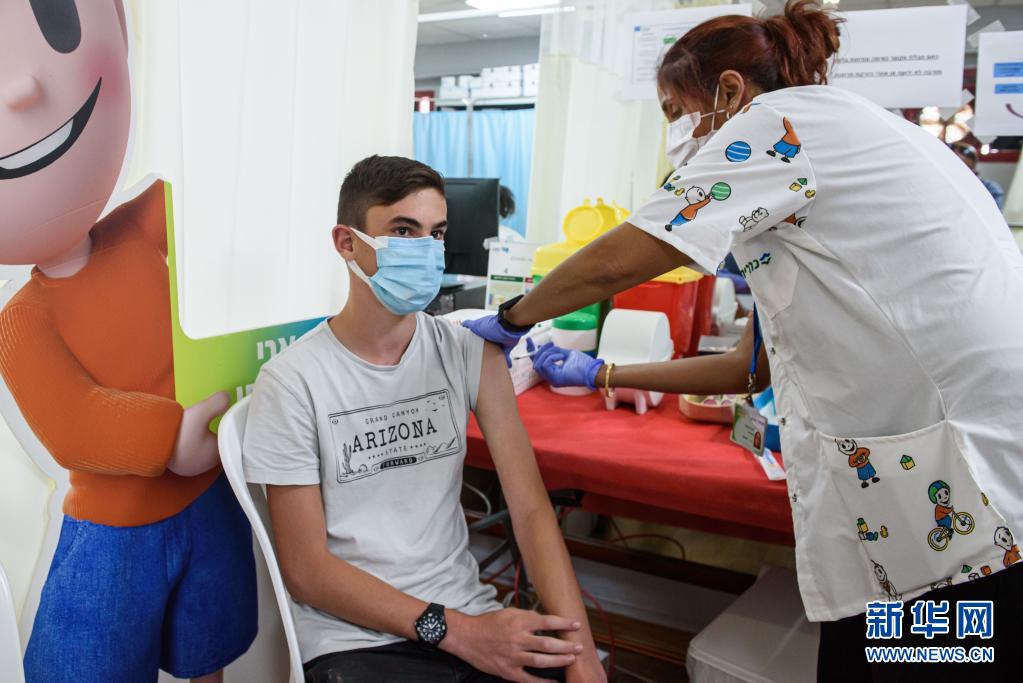 6月6日,一名男子在以色列北部谢莫纳镇接种新冠疫苗。新华社/基尼图片社