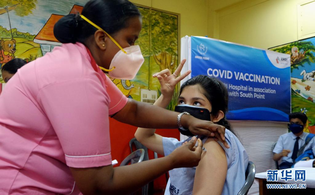 6月6日,一名学生在印度加尔各答接种新冠疫苗。新华社发