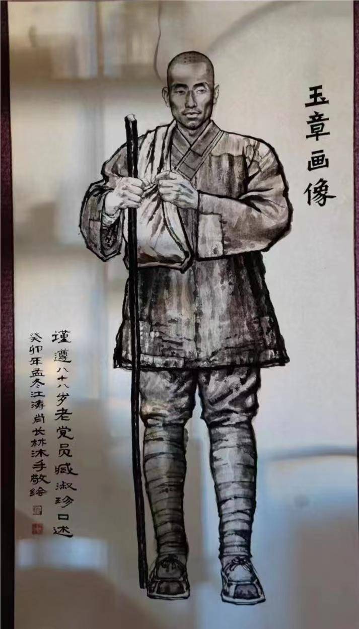 人物形象:据圣水峪村年已九旬岁的臧会珍老人为代表的人们的回忆,玉章和尚是个大高个,四方脸盘,两个大眼睛特别有神,和老乡亲们说话都和和气气的。依着众人的描述绘制成了玉章人像。玉章是法号,人们都不曾讲起他的姓名籍贯,他是一位无名无姓的,活在人们心中的有勇有谋有为英雄。