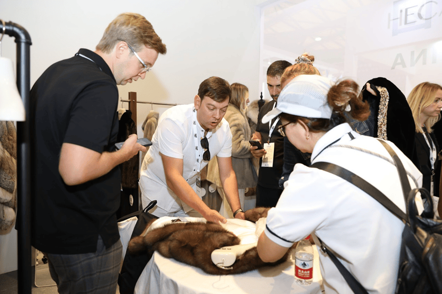 展馆内呈现出一派精彩纷呈的景象,各个展区都展现出独特的魅力与特色。精美绝伦的皮衣裘装系列引人注目,采用优质皮革原料,融合精湛手工工艺与创新设计理念,展现出不俗的品质与品位。Dorota、Saga furs、雪豹、KC、依奴珈、冰妃天使、芭而妮、祖阿曼、费雷梵萨、欧菲亚、隆生等皮衣裘装知名品牌纷纷亮相,展示最新产品。