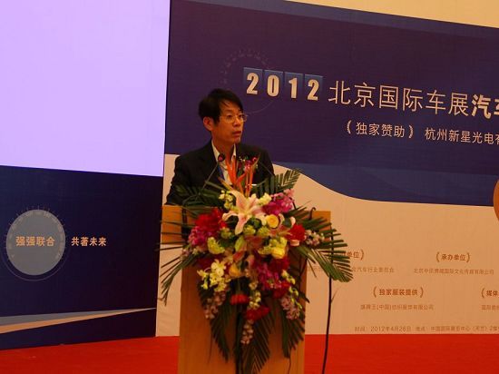 网易汽车4月26日报道 2012北京国际车展汽车精品采购论坛于今日在中国国际展览中心盛大开幕。此次精品采购论坛以“强强联合,共著未来”为主题,邀请到来自全球的整车及零部件企业负责人百余名,赴北京共商汽车精品的经营与未来发展趋势。杭州新星光电有限公司董事长季石安先生发表致辞。