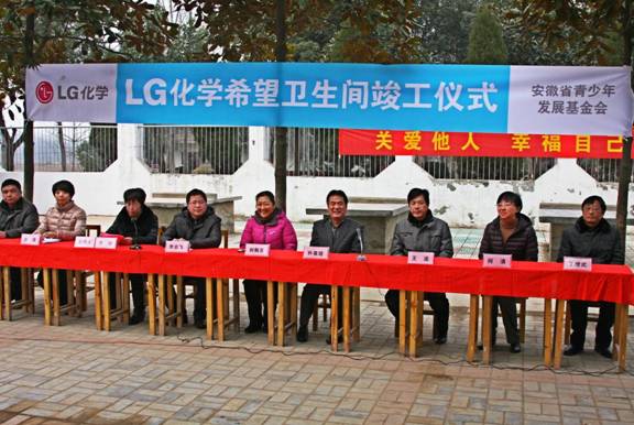日前,“LG化学希望卫生间”项目在安徽省六安市舒城县千人桥镇鲍桥小学竣工,LG化学、中国青少年发展基金会与舒城县的领导共同参加了揭牌仪式。