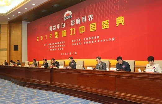 1月27日,由2012影响力中国盛典组委会联合中国商业企业管理协会、《市场观察》杂志社、中国和润集团、中国传媒大学(微博)MBA学院联袂打造的“2012影响力中国盛典”在京举行,“2012影响力中国风云榜”同时发布。2012影响力中国盛典举行同时,进行了中国传媒大学国学与管理研究中心揭牌仪式以及“影响力中国论坛”等活动。活动上,联合国经济发展委员会发来了贺信。