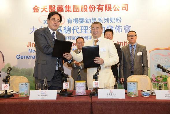 2014年6月12日美国美捷诚(McJayden)股份公司授权金天医药集团有限公司为美捷诚系列乳制品大中华地区医疗医药保健渠道总代理,美国驻港领事馆高级专员Christ Li先生受邀见证签约仪式。美捷诚品牌在新闻发布会上公开了新产品的入市计划,包括美国奥运圣地版液态奶及孕产妇配方奶粉,凭借北美最佳奶源地、严格的质量监管和一流的会员服务等诸多优势,美捷诚正致力于成为亚洲领先的乳制品运营商。