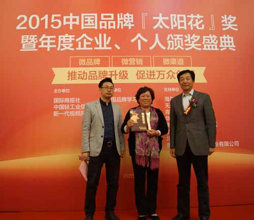 中国品牌“太阳花”奖是由中华人民共和国商务部、中国轻工联合会指导,商务部研究院、中国轻工业信息中心、中国品牌发展促进会、国际商报社等单位联合发起的国内最具专业性和权威性的品牌价值评选奖项。旨在关注较有开发潜力的品牌,重点考察品牌案例特点、实施规模、社会效果和成长性四个方面,围绕品牌战略发展过程进行跟踪评介,加强企业对品牌建设的重视,提升品牌价值,塑造品牌良好形象,推动品牌国际化发展。