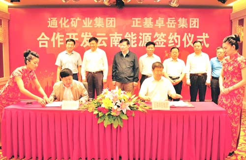 6月18日,通化矿业(集团)有限责任公司与正基卓岳集团有限公司签署合作协议,双方将强强联合,共同进行云南能源开发,应对市场经济下滑的挑战,追求优势互补,实现互利双赢。市委书记李伟、市人大主任徐斌、市委常委副市长蒋达华、市政协副主席褚来福等市领导以及浑江区和相关部门负责人出席签约仪式,通化矿业集团公司董事长李兴、正基卓岳集团有限公司董事长邹籍锋代表双方签约。此次合作是在党的十八届三中全会以及省市经济工作会议精神指导下,对混合所有制经济模式的一次重要实践,它不仅将壮大双方企业经济规模,更将对繁荣白山经济带来深远影响。