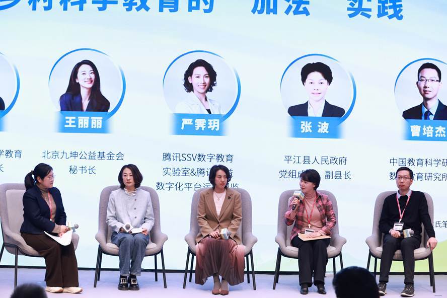 如何为乡村孩子做好科学教育“加法”成为论坛热议焦点。在专题对谈环节,各方代表分享了创新实践路径:腾讯SSV数字教育实验室通过“平台+技术+连接”模式扩大优质资源覆盖面;北京九坤公益基金会采取“综合举措+整县推动”的模式实现深度变革;平江县作为全国首批科学教育实验区,充分发挥苹果公司支持的“智惠教室”项目提供的资源,以STEM教育为核心,提升师生数字化应用和创新思维。与会专家深入探讨了项目落地中的经验借鉴与痛点难点,并就政策支持、资源整合等关键问题提出建设性建议。