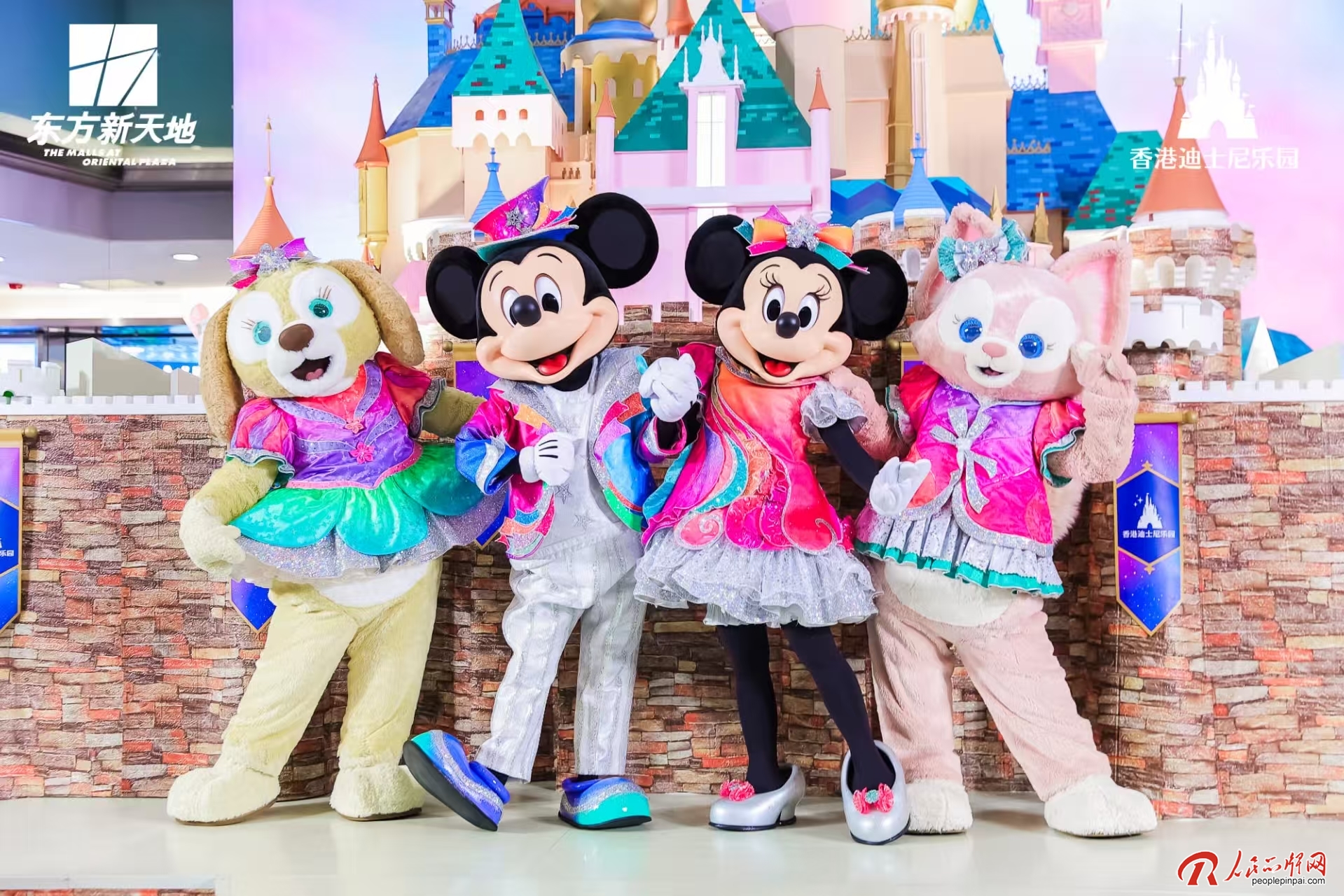 米奇、米妮、可琦安、玲娜贝儿四位迪士尼朋友齐聚一堂,他们身着全新香港迪士尼20周年限定服饰,活力满满,将欢乐萌趣送给在场的每一位顾客。