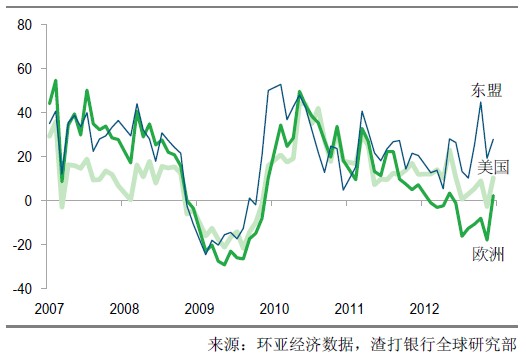 12月份的贸易数据表现强劲,尽管一些港口的吞吐量增速下滑。出口增长得益于假日销售的反弹,对美国和欧洲出口尤为如此。国内需求的改善推动了主要原材料进口继续逐步恢复。我们对2013年的贸易前景保持谨慎乐观。