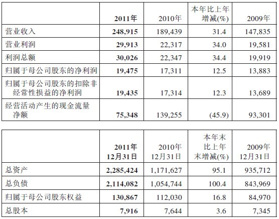 主要会计数据如下:(单位:百万元)