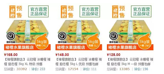 今年的褚橙还未上市,先看一下天猫上“褚橙旗舰店”上的预售情况。
